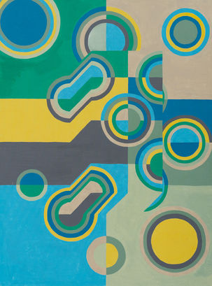 Similar to the quad paintings in style and intent, these are meant to be viewed as individual pieces with their own color stories. They are loosely inspired by the shapes used during the mid century modern period.