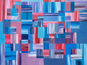 These paintings focus on the tension between rigid, hard edge lines and organic partially mixed acrylic paints.